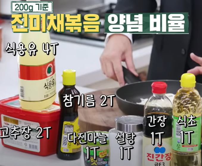 - 식용유를 사용한다: 어남선생 진미채의 핵심이 되겠습니다! 식용유 4숟갈과 식초 1숟갈로 진미채를 부들부들 밥도둑으로 만들어줍니다.